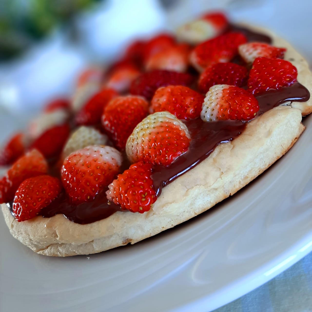 PIZZA BROTINHO COM CREME DE CHOCOLATE E MORANGO